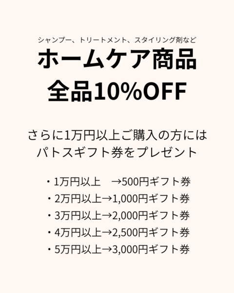 ホームケア商品1万円以上(税抜き)ご購入の方にはパトスギフト券をプレゼント!